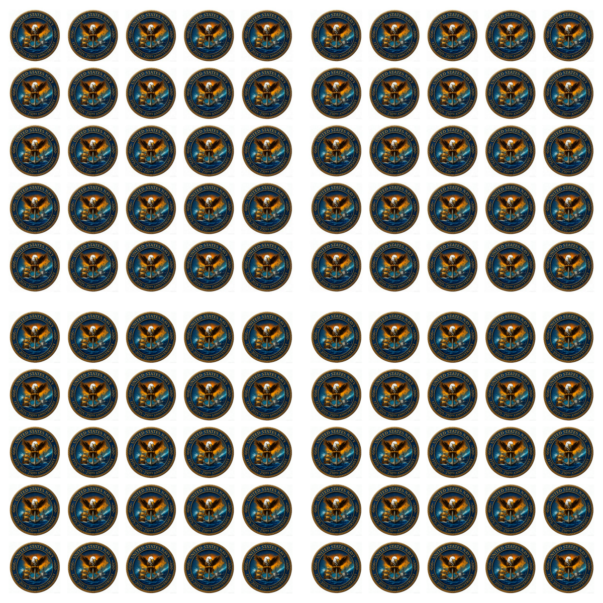 Design: U.S. Navy emblem, eagle, anchor, and “1775–2025” anniversary mark